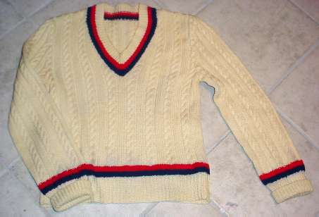 I collapsed into a pile of amusement, because my mother had knit this **exact** sweater for my uncle when he was a teenager, probably circa 1958 or so. This sweater still exists! I have it in my closet right now: