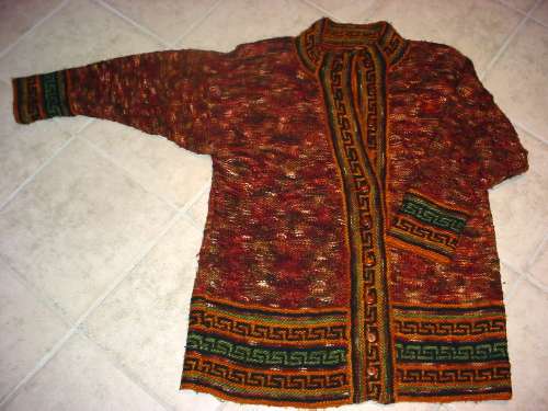 I made it in ’96, as a reward for landing a goodjob after moving from Maryland to Boston. But the project started ten years earlier when I bought some rosewood buttons at a crafts fair in Virginia. It took a long time before I found the right yarn/project to sit behind them.