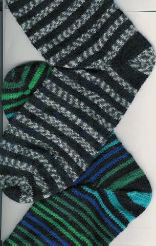 Knitzanknitzanknitz asked about how short-rowed heels in self stripers look. Here are a couple of mine: