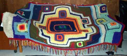 i love this blanket! i don’t know what you are talking about "horror". i think its brilliant. i can not beleive you made that when you were 14. i love how you have all the squares overlaping. ok maybe i wouldn’t have picked those exact colors but the randomness of the pattern is enought to make me want to learn to crochet!