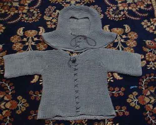 In the mean time, if you want to knit up some play armor for your own miniature warrior, the method description is on wiseNeedle.