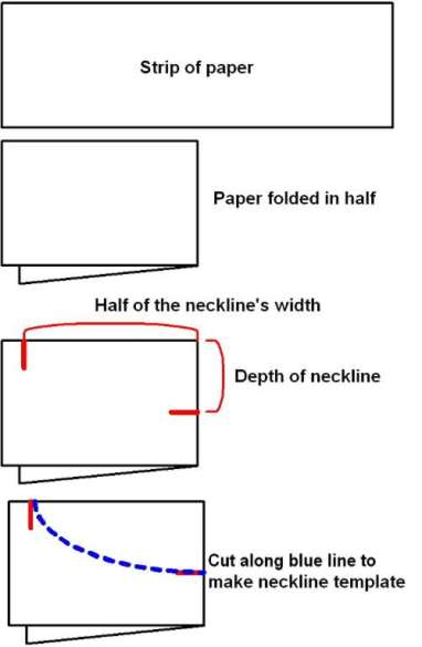 Although this sounds hard, mostly it’s figuring out how wide and how deep the neck area should be, then taking a piece of paper and folding it in half – marking the width and depth on it and cutting a symmetrical curve by hand to match. Paper is cheap so if it takes several tries it’s o.k. The alternative of course is to whip out the French curve or drafting program and produce a proper drafted piece. Either part of the paper can be used, although I do find using the smaller inner curve piece to be easier to pin out flat onto my knitting.