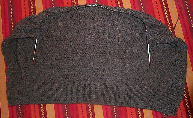 Back from a holiday sojourn with my husband’s family, I present my leaf sweater progress: