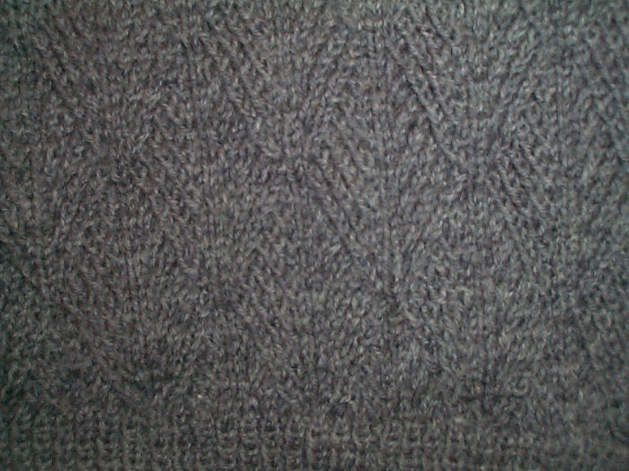 As you can see, the preponderance of twisted stitches (1×1 cables, not knit into the back of the stitch type twisting) do slow me down quite a bit. I can say however that I am almost done with the third 50-gram skein of Jaeger Matchmaker. Since I had just started the second before we left, I can attest to a modicum of progress. A couple people asked for close-ups of the texture pattern