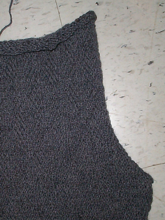 For the record, here’s a bit of detail in which you can barely make out the texture pattern and the armhole decrease area (click on this for a close-up):