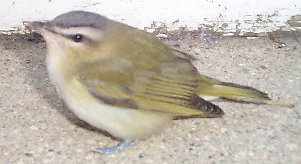 Special thanks to Sally, who identified our little flutterer as a Philadelphia Vireo. We kept watch against cats (from a distance), but otherwise didn’t bother him or go near him. About an hour and a half after he was first spotted on the ground he shook out his wings and zipped up into the trees. Given the range reported on the bird ID link page Sally provided, he’s just passing through on his way down to the tropics somewhere. I hope he makes it.