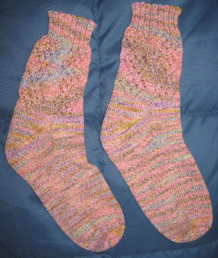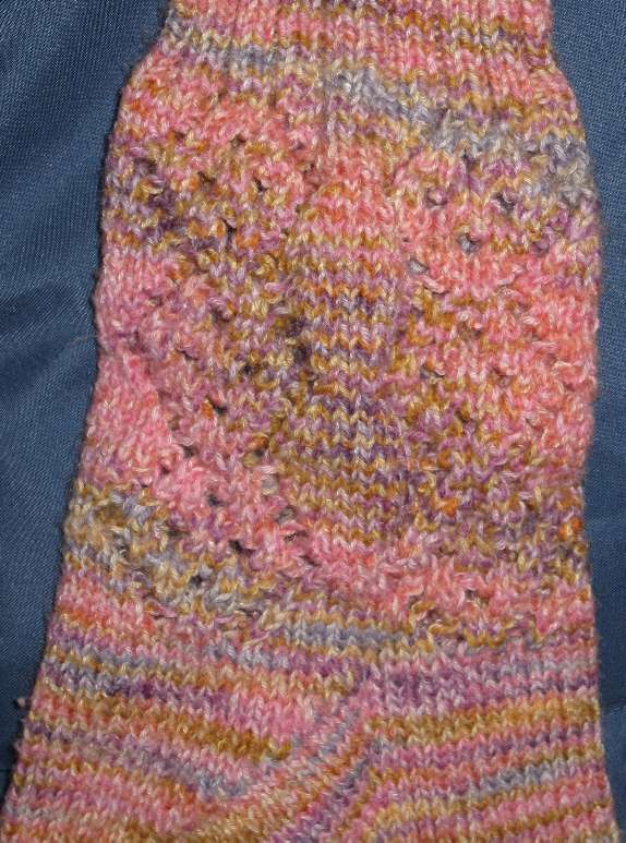 As promised, and thanks to the Tofutsies sock recipient, here are pix of that pair. She’s a far better photographer than I’ll ever be, so for once shots on String have an element of clarity: