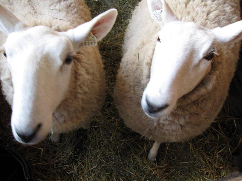 To start, no sheep festival is complete without its eponymous totem. Here are a couple of girls, still in their fluffy finery, checking us out for illicit snacks.
