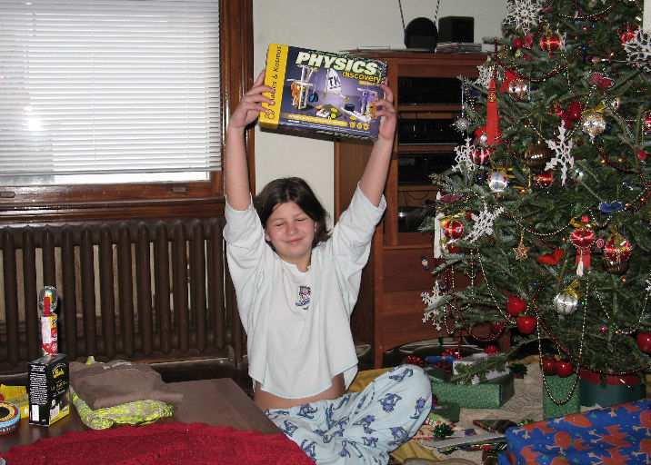 Every girl should have a gift pile that includes jewelry, fun clothes, books, games, and own physics discovery set. The kids are now thoroughly spoiled by family, friends, and their parents alike.