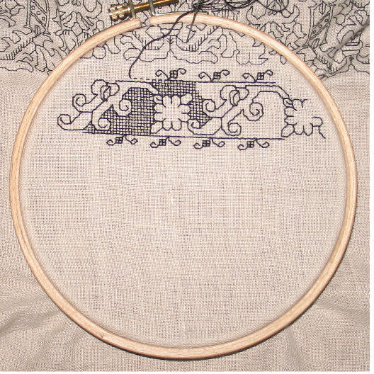 Another band on my new blackwork sampler. This one is graphed from an artifact.