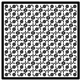 Finally, off-count elements can drive me batty. This pattern is a particularly egregious example. Not only is it a knight’s move design, the skew-to-the-count little boxes where the four rotated squares meet can throw me off and make me forget where I am.