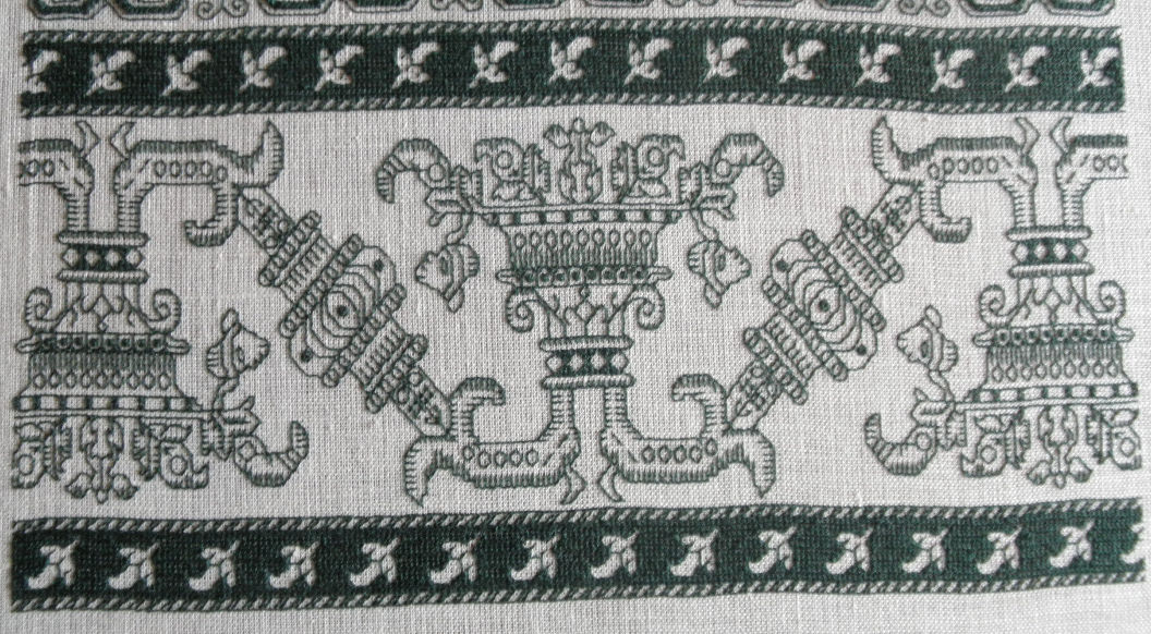 I spent some time noodling out what the next one will be. I tried out some complex Punto Spina Pesce patterns – the ones that use either Montenegrin or a Montenegrin-like long armed cross stitch variant to trace interlaces and intersecting lines, to make a linear design that’s fairly heavy. Unfortunately more experimentation is warranted. I’ve got a basic understanding of these stitches and how they merge horizontal, vertical and diagonal elements, but the designs I’m looking at make those changes very quickly, sometimes after a run of only one graph unit. The methods I’ve learned from the Autopsy of the Montenegrin Stitch Exhumed book take two or three units to complete directional transitions. I’ll have to play with these more off line to figure out “speed changes” and triple line conjunctions.