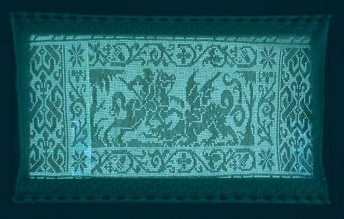I am an avid though haphazard researcher, drafting up historical patterns from artifact and early book sources.  I’ve put together several pamphlets of these designs. The most recent complete book was The New Carolingian Modelbook: Counted Designs from Before 1600.  It was published for an SCA audience, but to my great surprise was discovered by the stitching community at large.  I won’t go into the details, but TNCM is now out of print.  I am working on a sequel, which I hope to have out soon via a print on demand or self-publication service.  The Second Carolingian Modelbook: More Designs from Historical Sources will not duplicate the designs in my earlier book.