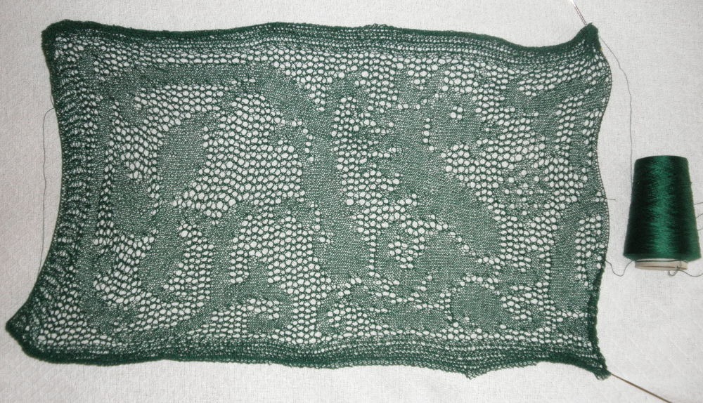 First, progress on my Dragon Stole, which I’ve modded to include the central undine from its pattern’s ultimate ancestor: