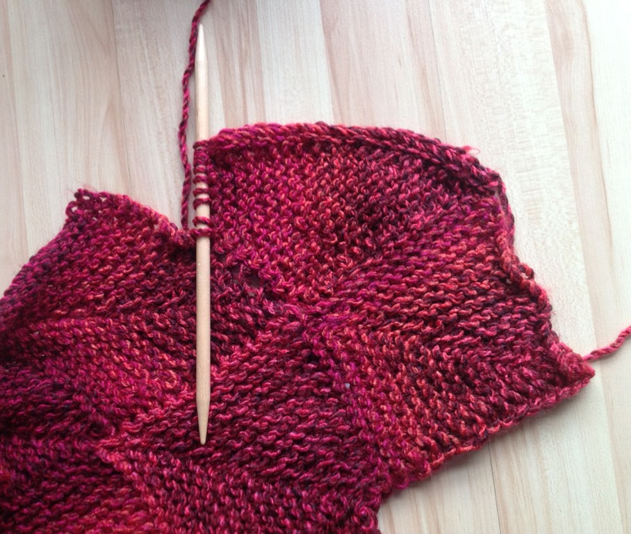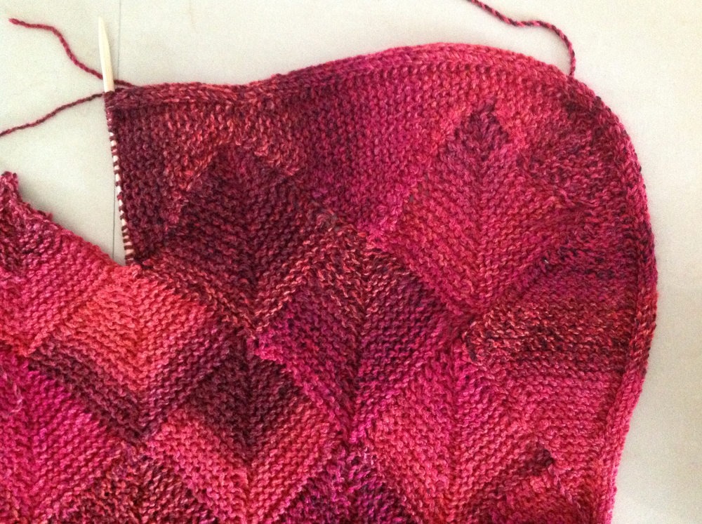 If I still don’t have enough yarn, the next possibility is to rip back some of the center diamonds and make the total piece smaller. But because that’s worked on the diagonal, doing so will be a major pain.