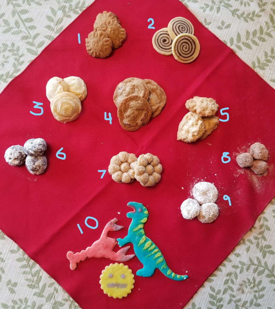 As long-time readers here know, we do ten types of cookies to welcome the holidays. We do a mix of old time favorites, with a few new types each year, and have been slowly adding the tastiest of the new cookies to the regular roster. I think this year we’ve hit on the best assortment yet.