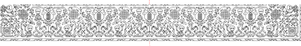 […] My last post discussed the non-historical use of the same framing element on either side of a mirrored repeat with horizontal directionality. Here’s another feature of this strip that’s not often seen in museum artifacts – the mitered corner. […]