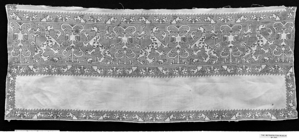 “End of a Tablecloth” 15th-16th century. Italian, Sicilian or Spanish. Metropolitan Museum of Art, Accession 08.48.132