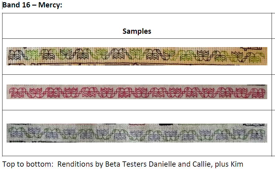 If you are working our Epic Fandom SAL either as a whole or as a strip excerpt, please let me know. It gives me great joy to see how my “pattern children” fare out in the wide, wide world, especially when they meet up with creative, playful people. And if you give permission, I’d be happy to share your pix of this developing sampler, it in its finished state, or derivative projects including one or more of the Epic bands here on String, in a gallery post, with full credit to you as interpretive artist.