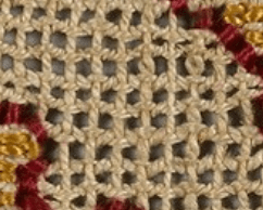 The one above looks to have an indigo-dyed ground, stitched in white. Italian, 16th century, from the Met’s collection, accession 08.180.448. This one is about 3.75 inches tall, which makes its scale very close to the 14 meshes per inch of the Korean steaming cloth.