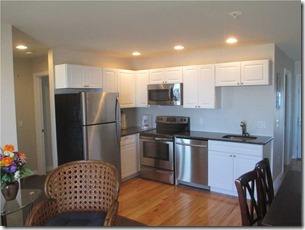 The apartment itself is two bedroom with two queen beds, with a full kitchen (full size stove with oven, fridge. dishwasher, microwave, sink, coffee maker, toaster, blender, and even a lobster pot). It is air conditioned/heated, and also has a washer and dryer, and a full bath with shower and whirlpool tub. The living room sofa folds out into a third queen size bed, so the place will sleep six, comfortably.
