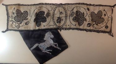 Since my last post about it I’ve completed the green twisted link strip, and the delicate black flower strip below it. Now I’m up to another band in green. Peacocks, or if you prefer, bling chickens – my rendition lacking much of the grace and nobility of the actual birds. Note that I am not using the silk for this one. I’m still experimenting with the Sulky threads. (Partial verdict – I MUCH prefer the silk.)