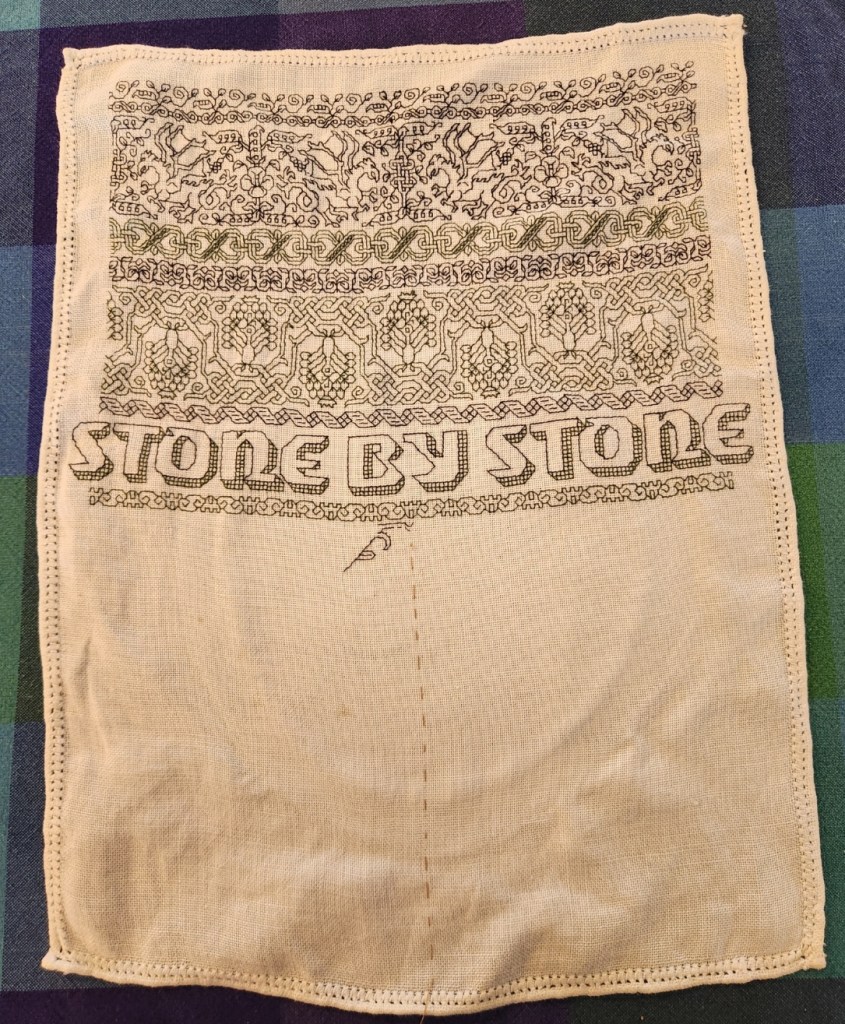 A catch-up post on what’s been stitched since I explained the Mystery Saying. Just a bit over two weeks, in fact. This is what I’ve been up to: