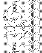 7. TNCM 68:2 “Seam Decoration or Border Repeat”. Graphed from photo in Pascoe’s Blackwork Embroidery: Design and Technique. Pascoe cites this as being from 1545. The original was worked along the shoulder seam join line of a butted sleeve man’s shirt, stitched in all black.