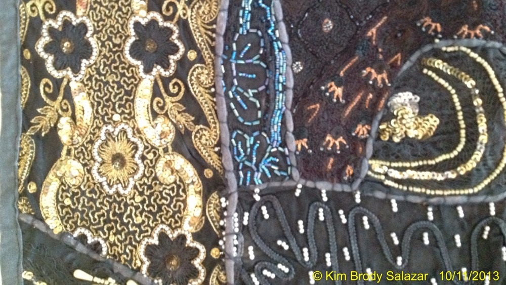 Close up you can see the amount of beadwork, sequins, gold stitching and other encrustations: