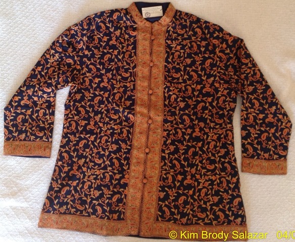 Here’s the prize piece from our big India trip – a tamboured Pashmina jacket, made in Kashmir, but purchased in Agra.