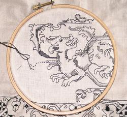 I’ve paired it with a border from the same source, but not shown in association with the dragon on the original sampler. Like most of the other strip patterns I’ve stitched over the past 18 months both of these will be in my Second Carolingian Modelbook (TNCM2).