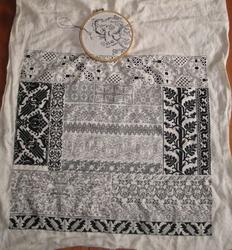 On my own blackwork sampler, progress is being made. My Lipperheide panel is proceeding apace.