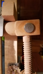 Oh, and on my big flat scrolling frame, remember those penny size strong magnets I glued to the uprights? They hold the badge leashes quite securely, too. So I have the advantage of tools-to-hand on my flat frames, too.