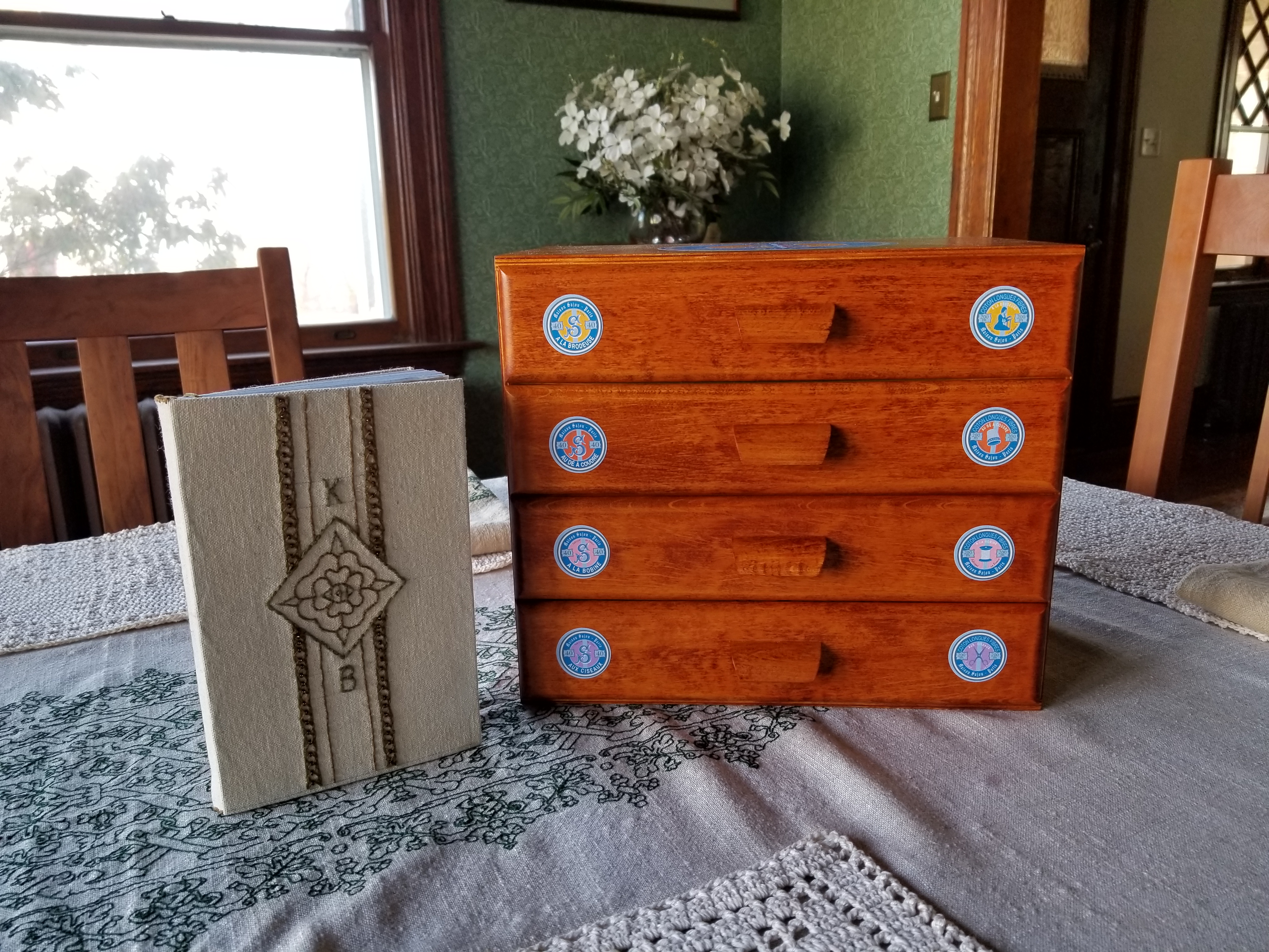 My family has fitted me out with all sorts of stitching goodies for the new year. There were silk threads and linen grounds from my mom and the Elder Offspring – enough to keep me going for quite a while. In addition, The Resident Male drew inspiration from a recent Facebook post (plus the general state of the stitching supply midden next to my favorite chair), and gave me a mercer’s chest from Sajou in which to store my embroidery supplies and tools. A princely gift. And yes. It’s already full.