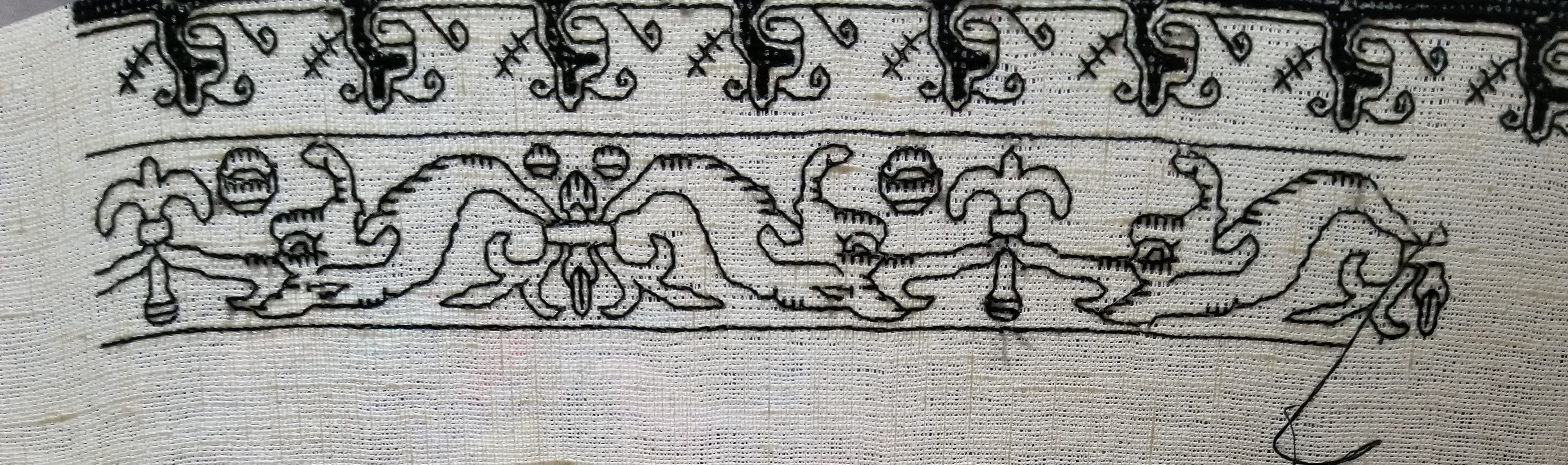 Therefore, we have a cloth covered with symbols of devotion, loyalty, and self-sacrifice – something that would have special meaning in the religious setting. The background for this may be Sweden’s departure from the Catholic church in the late 1520s. Perhaps this rather humble, non-demonstrative bit of stitching (no gold, no gems, no saints) with its generic paean to virtues fits into the schism between Catholicism and Sweden’s developing Lutheran-based faith.
