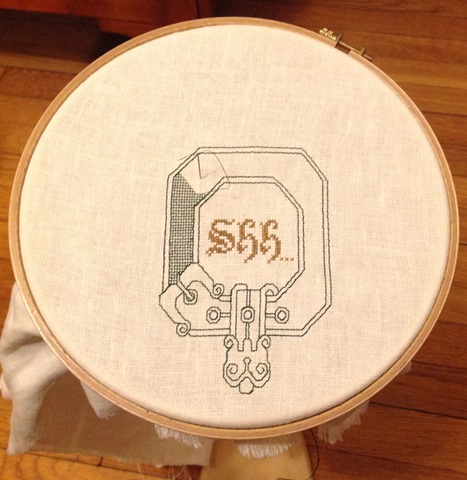 Aside from the continuing drama of living in a construction zone, I did get to peel off this weekend and have some fun. I went to an SCA event – the Hrim Schola held in Barony Beyond the Mountain, on Saturday. For my non SCAdian friends, the day was a roster of classes in technique and history, focused on needlework, weaving, knotting, knitting, and allied techniques and tools. It was held in southern Connecticut.