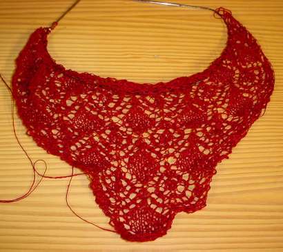 I bought the pattern a while ago, at the same time as Spider Queen, so I could decide which one to do first. I’m using the red rayon faux-silk I got at Webs: