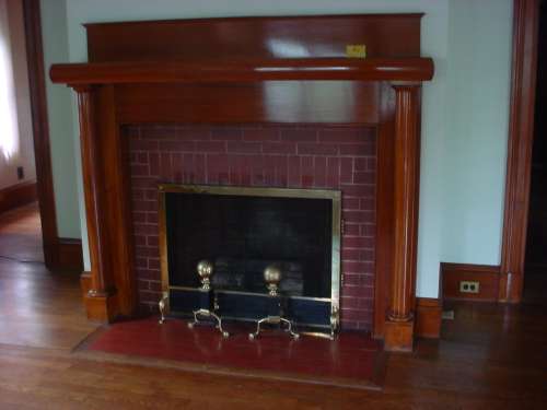 I’m pretty sure that the inside fireboxes of both fireplaces have been rebuilt. To my untrained eye, the plain brickwork surrounds are a bit incongruous, especially with the red tile hearth, but they appear to be original. Also through the window you can see another of my nuisances. The pressboard hutch so generously left by the former owners. The house contains a few pieces of abandoned furniture for which I now have to arrange charitable donation. Grrr.
