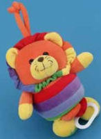 She’s got one of these. It’s been her favorite toy since she was only a couple of months old. Her Squeaky is now much less pristine than this catalog shot, and (mercifully) no longer plays a music box rendition of “Born Free.”? She?picked out the self striping yarn because she wanted a “Squeaky Sweater,” and now she’s got one. But I?think you have to be six to truly appreciate such things.