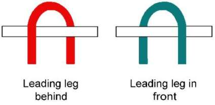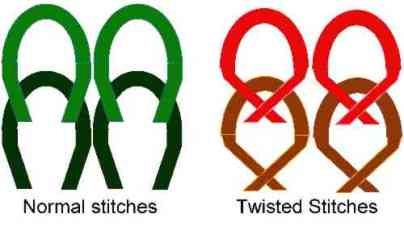 The leg in front orientation is the most common. It’s the expected orientationagainst which 99.999% of knitting patterns are written. There are exceptions of course. People who knit Eastern Uncrossed like my mom alternate orientations between knit and purl rows, but they knit into the back of their stitches when working stockinette so that they avoid making twisted stitches. The second thing to recognize is whether or not the way you are forming a stitch will produce a normal U-shaped stitch, or a twisted one. (The twisted ones look like toddlers-in-trainingpostponing the inevitable.)