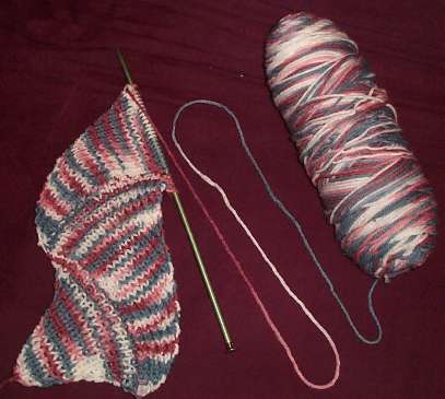 There doesn’t seem to be any correlation between yarn maker and sock failure. Nor does the failure seem to be related to gauge, since all the victims were knit on the same size needles.