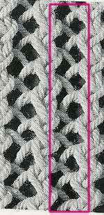 I chose a bunch of texture patterns thatI thought would lookgood together. Lots of play among them on diamonds and sharp diagonals. My idea was to knit a pattern panel at each end of the scarf, and use a simpler, coordinating pattern between them for the scarf body, with the entire piece trimmed with a killer edging.