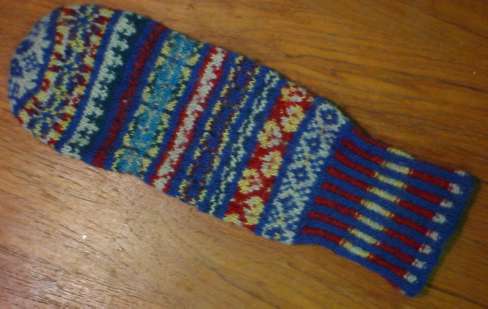 Reaching back into time (and into the bottom of a box that surfaced during unpacking yesterday) I come up with my first-ever attempt at both knitting in the round on DPNs, and at stranded colorwork in the round: