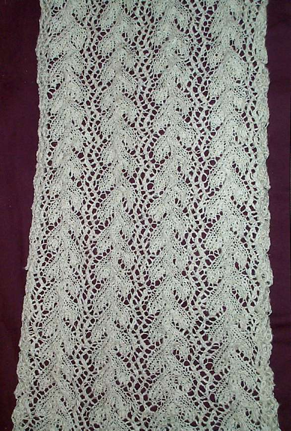 I have to admit that one of the reasons I like complex lace knitting is that there’s always something interesting and new happening. It’s fun to watch the pattern build row by row, accumulating each new texture and design. This scarf by contrast is a long strip of a single stitch pattern. We’ll see how I as a knitter with the attention span of a mayfly handle this challenge to perseverance.