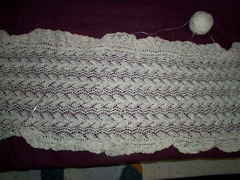 As you can see, I’m making progress on my Print of the Wave scarf/stole thing. It’s roughly 24 inches long. I figure I’m a tad under half-way home.