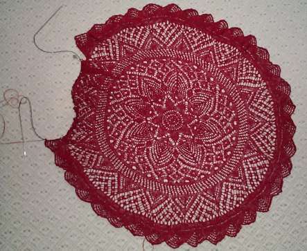 Small progress on several fronts. First, I’ve finished the knitting on my red doily. I have done the ceremonial breaking off of the yarn, and am up to the grafting part. I will begin that tonight, possibly even documenting it with photos, if I can find a willing volunteer photographer in the house. I will also try to get to the blocking of both doilies this weekend, although pre-holiday preparations and work may intrude.