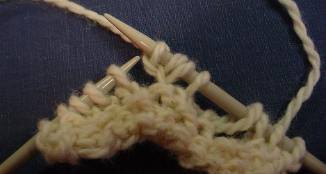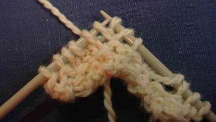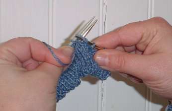 First, knit into the back of the stitch (needle shown inserted into back of next stitch, ready to knit):