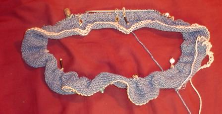 Here’s the obligatory Wiggly Worm Photo of a piece just aborning. Proof positive that I’ve actually cast on and am working on the thing:
