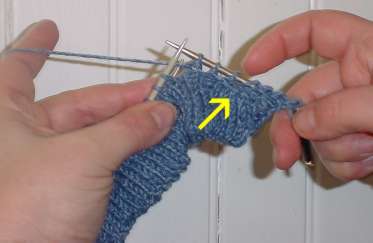 Then knit into the front of THE SAME stitch (needle shown inserted in the right place, ready to knit):