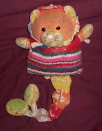 And Squeaky himself? In a bit of art-imitating-life-imitating-art, the toy that inspired the Regia Crazy Color sweater for the child has his own Regia Crazy Color sweater.